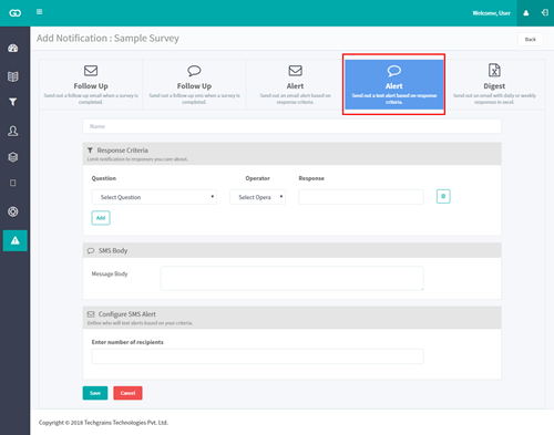 - Sélectionnez les critères de réponse et définissez une règle sur laquelle le SMS d'alerte doit être envoyé.
